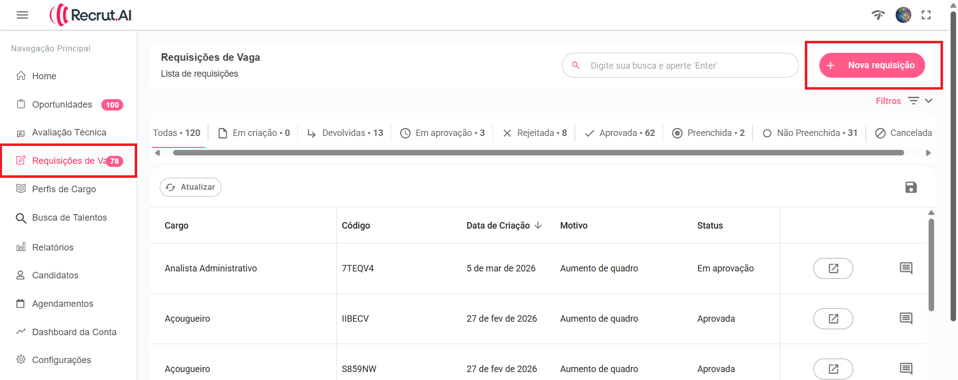 O novo Formulário de Requisição de Vaga torna as solicitações de requisições mais estruturadas, ágeis e transparentes, padronizando informações e facilitando a comunicação. A seguir, explicamos como criar e preencher uma requisição na plataforma.