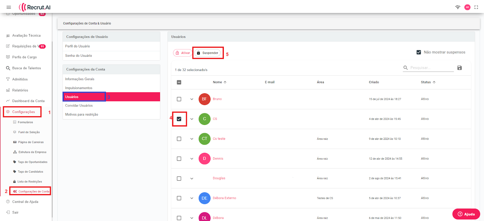 - Selecione o usuário que você deseja suspender.
