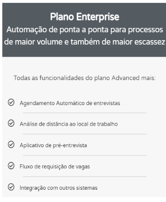 Vale ressaltar que, como os planos são personalizáveis, você pode adicionar serviços extras, como envio de SMS, aplicativo RECRUT.AI ou Sugestões da AI, a qualquer um dos planos.