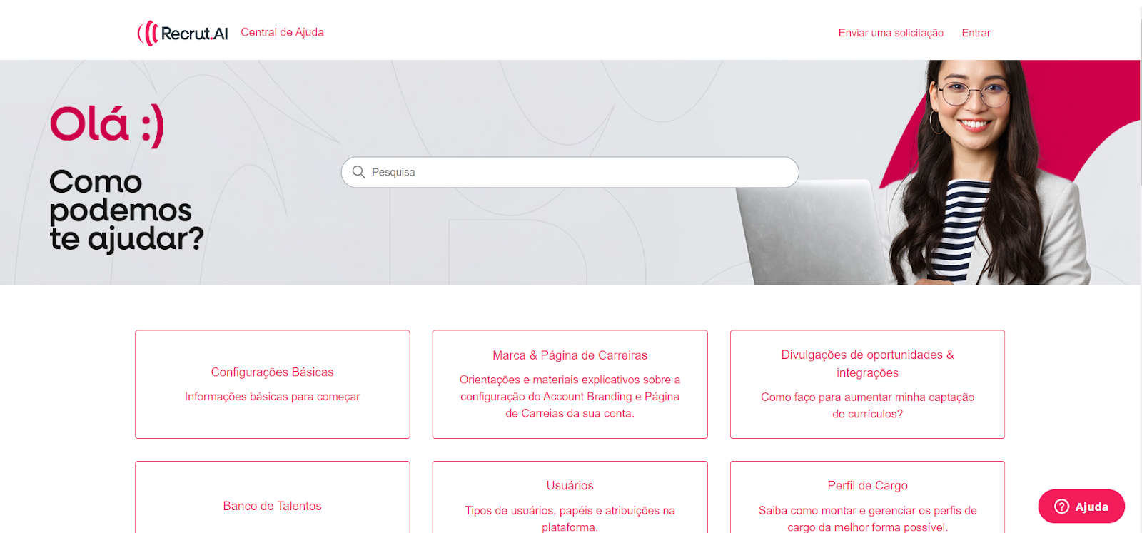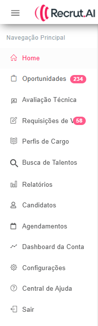 Nesta aba, você será redirecionado para um site externo onde encontrará este canal, a Central de Ajuda Recrut.AI.