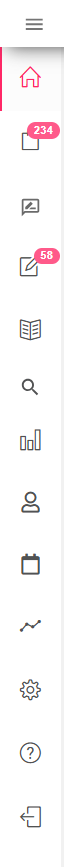 No cabeçalho fixo da plataforma, do lado esquerdo, você encontrará um menu que exibe ou oculta os nomes dos ícones na barra de navegação. Do lado direito, há um ícone que mostra as informações do plano da sua conta, seu avatar e um ícone para entrar ou sair do modo tela cheia.