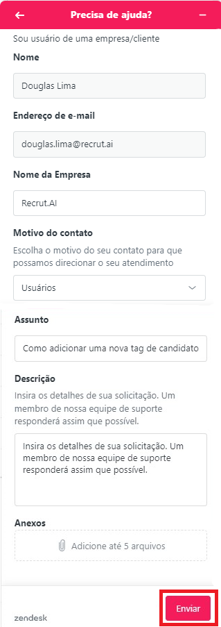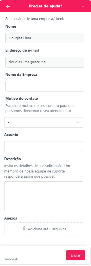 Ao clicar no botão de entrar em contato, uma nova tela aparecerá e você deve preencher todas as informações solicitadas e enviar a sua solicitação.