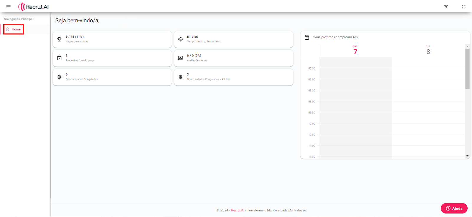 Nesta página, o usuário encontrará um resumo das atividades diárias e informações específicas para ajudar na organização. A seguir, estão os principais pontos que você encontrará na Home, esses pontos ajudarão você a se manter organizado e acompanhar seu progresso de maneira eficiente.
