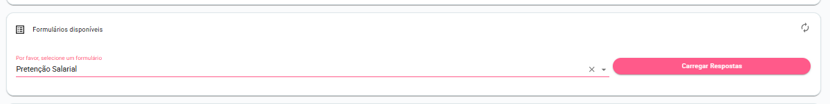 4-Após selecionar a oportunidade você deverá agora selecionar o formulário que deseja verificar as respostas e clicar em "Carregar respostas"