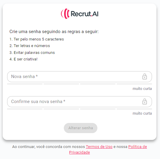 Após clicar em "Criar nova senha", abrirá a seguinte página: